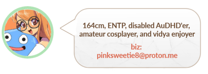 DNI (Do not interact) or BYF DNI (Do Not Interact / Do Not Follow)?BYF (Before You Follow / About My Account)I prefer followers be 16+ as I primarily discuss and post about M-rated games (like Persona) and related fan content, and as I am in my 20's, I am not fond of following back minors. My content may contain spoilers. I am autistic, and my content will include autistic character headcanons. I am very supportive of mutuals and friends' work! Please let me know if you are uncomfortable with me retweeting or re-sharing your content to my audience; otherwise, I may share your posts (including older content, as I use TweetDeck). REPOSTS ARE OKAY, but you must ask me beforehand as I want to control and know where my work is being posted. Edits and fanart are fine, and you can email me at [email protected] to ensure I see it. Finally, I am not always able to reply to every comment or DM, so please do not take it personally if I don't respond right away.Follow ≠ endorsementKo-fi vs Patreon?I've since been switching to Patreon since it's a lot more convenient for people to use and to deliver more awards in tiers, but feel free to follow and sub on Ko-fi also, since I will use Ko-fi for the shop tab and commission tab. I will try my best to mirror uploads on both.Age?Not underaged.Where are you from?D(M)V of America! Also, hmu if you're a cosplay girlie from the area too!! Looking for more friends.Ethnicity?White, and part Thai.Why do you have braces?My braces are real, I've been in them since December 2023. You can check out my braces + double jaw surgery journey highlight here on my Instagram profile for more info.Do you work or study?Due to managing neurodivergent symptoms, I haven't worked before. I've participated in vocational programs for individuals with disabilties and neurodivergent disorders like mine and am currently focused on self-improvement through online learning and obtaining certifcations such as CompTIA and CiscoNeurodivergent disorders?I have autism (Level 2) and ADHD, also known as AuDHD. I am professionally diagnosed.How long have you been cosplaying?Since 2019, my first cosplay was Futaba Sakura from Persona 5 which my father bought for me.Do you watch anime?No, not really. I prefer TV shows like Better Call Saul, Breaking Bad, Dexter, Supernatural, and Cobra Kai. I do enjoy some anime, mostly slice-of-life comedies and older classics like Nagatoro, Sakamoto desu ga?, Watamote, and Toradora, but I wouldn’t call myself a big enough watcher to say I’m an anime fan. I just like Japanese videogames, which can make people mistakenly assume I also watch anime.What editing software do you use for videos?I use CapCut for video editing and transitions, and Meitu premium for cosplay editing. CapCut has an auto-captioning option that I like to use for videos if I'm talking and a teleprompter option, too.What contacts do you use?I use enlarging lenses from Pinky Paradise. My favorites are Geo Princess Mimi Almond Brown, GEO Big Grang Grang Brown (more natural look), and G&G Max Gold Black. For other colors, just go to their website and use the 'enlarging' filter, then select the color you want.What makeup do you use?Tbh, anything you want, really. My brands are Judydoll, E.l.f, Maybelline, and Etude House. For my looks, it's just concealer, mascara, eyeliner, and some blush to tap on my cheeks and eyelids, then highlighter on my nose tip and down my nose bridge. Since I dislike wearing false lashes, I'll make my eyelashes look pointy using a tweezer to shape them out. I also do a subtle aegyosal with natural brown eyeshadow and lighten the under-eye area with a lighter base. I don't get too elaborate since I think less can look better than more with cosplay. I use Douyin makeup as inspiration.Where do you get cosplays?I use AliExpress 99% of the time. I've even bought from sellers with zero reviews and it was fine; it's safe to buy from, and you can easily get your money back if there's an issue, which I've had success with.Other than that, I occasionally import cosplay from Japanese Mercari using Buyee as a proxy service. I also sometimes buy second-hand within the U.S. through Mercari and Facebook groups for second-hand cosplay selling. Occasionally, I'll use eBay if I have to search far, but AliExpress is definitely what I use most. I've also bought from Cosplay Bhiner, which is a proxy agent for China.If there's a cosplay available on Amazon Prime for shipping, I'll get it there, but I haven't done that in a very long time other than to get wigs to work on, which I use MapofBeauty and other various brands for.What videogames do you like?I am primarily a PC gamer; you can check my specs here (tap!). I also have some consoles I play on when I want to enjoy a TV experience.I mainly prefer JRPGs like Final Fantasy, Dragon Quest, Persona, the Shin Megami Tensei series, Fire Emblem, and other older ones like Chrono Trigger and Skies of Arcadia.Multiplayer games I play in my free time are World of Warcraft, which I've been playing since I was a toddler, and I occasionally play Osu! (Standard tablet user player, and Mania 4-key, learning 7-keys, playing since 2014). I am an ex-League of Legends player too, from all the way back to Season 3, but I only dabble in ARAMs now. My backlog in my main section includes more information on my tastes.I also stream occasionally on YouTube at @ EllenZappa too, and I plan on coming back from my long term hitaus.Why Twitter?I use Twitter more for engagement and sharing. If you want to know more about me, follow me @EllenZappa on X. I also enjoy being in fandom spaces and keeping up with media.How can people support your work?You can support me on Patreon at patreon.com/c/pinksweets8, which is my main platform for uploading personal blogs, my cosplays, and my artwork (though my focus has shifted elsewhere, so I haven't drawn in a while). You can expect lots of cute cosplay selfies/videos and some flirty ones too! All content is PG-13.I have mont